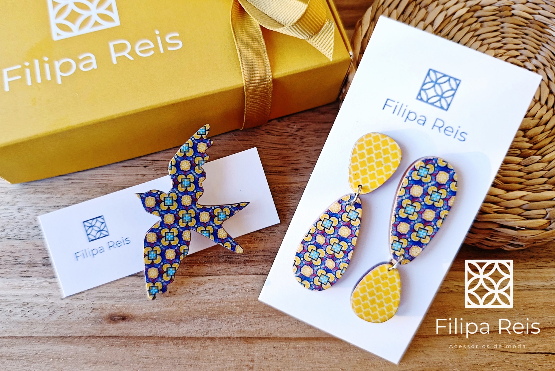 Brincos duplos médios oval 16,00 € Desconto de %. Partilhar Comprar Contactar Brincos oval assimétricos, médios, leves e únicos. Peças de madeira leves com padrões de azulejo português. Medidas: 5,5 x 1,5 cm As peças Filipa Reis são enviadas em bonitas caixas de presente. Se necessitar de alguma informação adicional por favor contacte-nos.